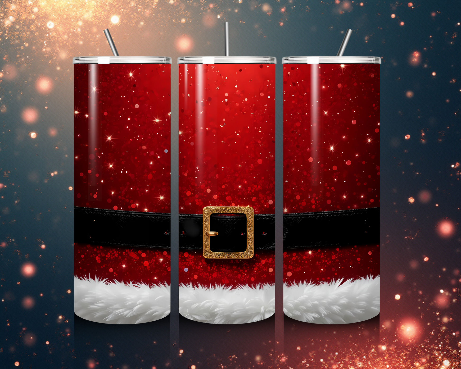 Der rote Tumbler mit schwarzem Gรผrtel und goldener Schnalle erinnert an den beliebten Weihnachtsmann-Bauch โ veredelt mit einem strahlenden Glitzereffekt, der im Licht schimmert. Dieses detailreiche Design macht den Becher zu einem echten Hingucker und verleiht jedem Getrรคnk eine festliche Note.