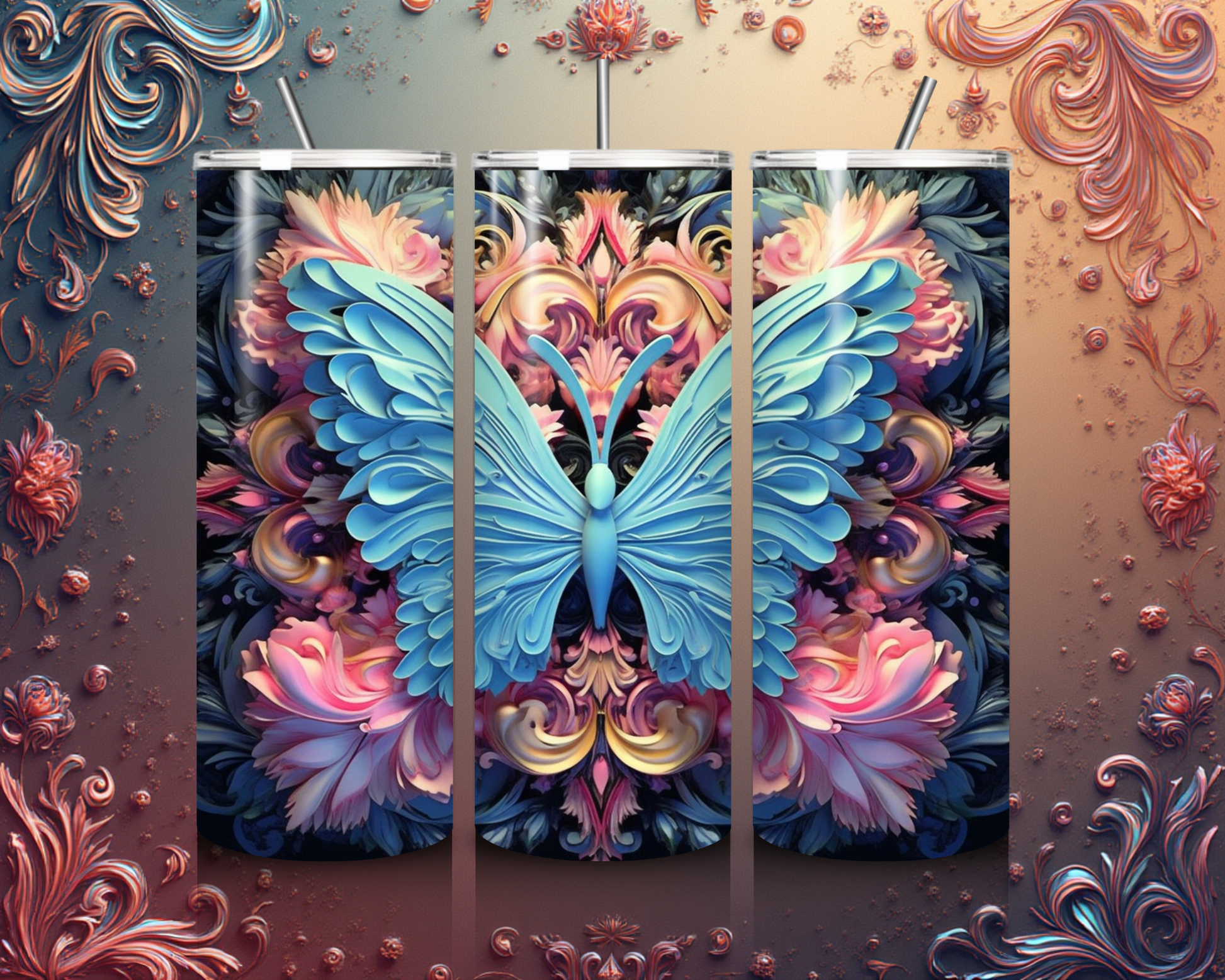 Tier Tumbler mit blauem Schmetterling – Stilvolles und langlebiges Trinkgefäß